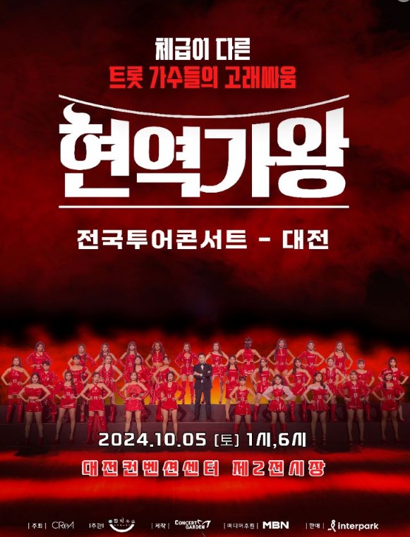 대한민국을 대표하는 트롯 현역가수들의 전국팔도 콘서트가 진행되고 있습니다. 대전에서 현역가왕 콘서트가 열립니다!